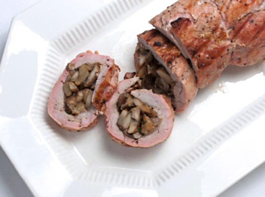 Grilled pork tenderloin stuffed with mushrooms and pear