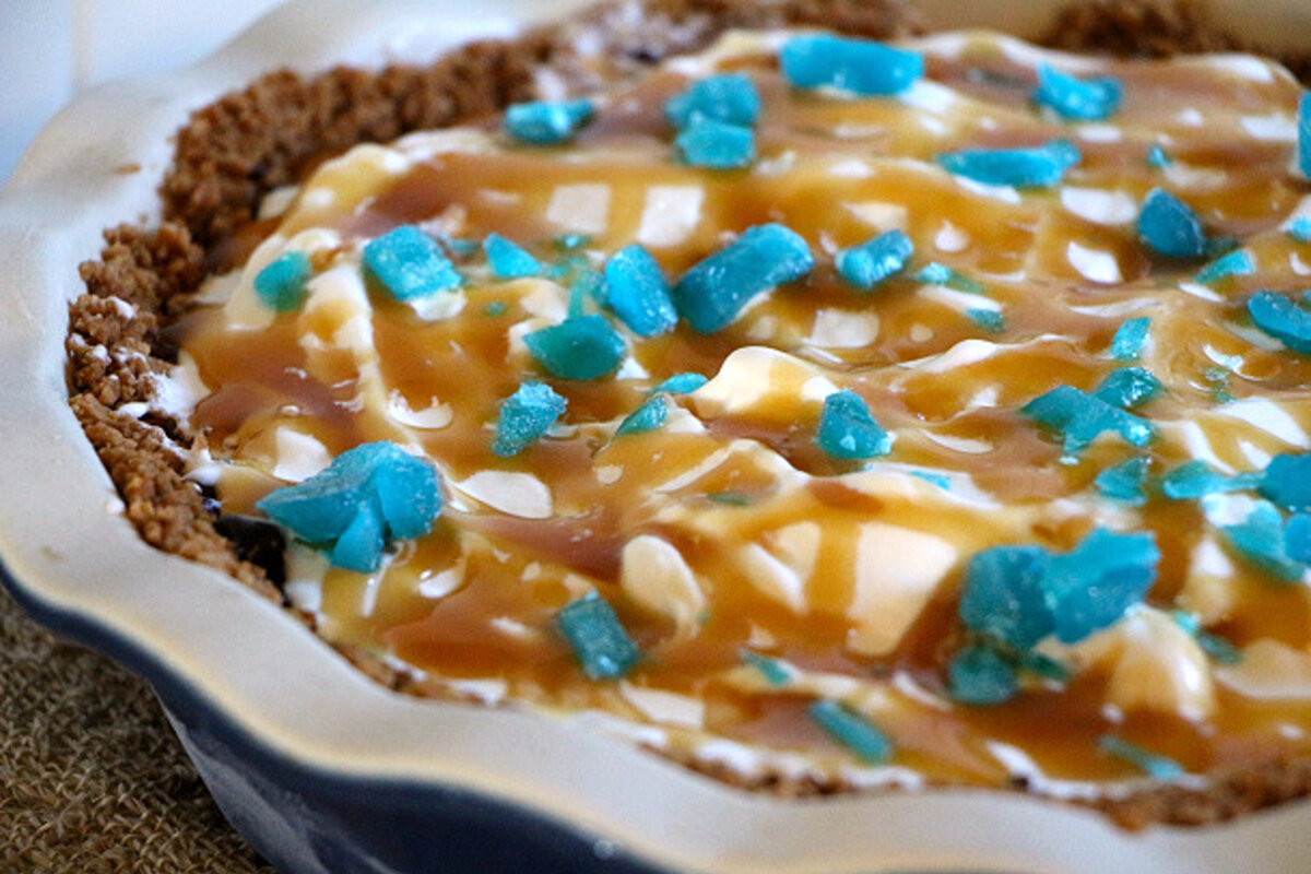 6. For more of a "Breaking Bad"听effect, garnish the pie with little bits of blue rock candy or crushed blue hard candy. *You might want to wait until the kids go to bed before adding the crystal blue garnish. It just didn鈥檛 seem right to have the kids around pretend drugs, even if they鈥檙e clueless about the reference.
