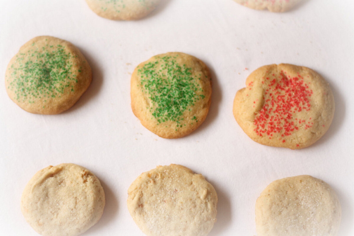 To make them festive for the season, I sprinkled the cookies liberally with colored sugar.聽Stacked, wrapped in cellophane, and tied with a bow, they make a lovely edible gift.聽Or, invite your girlfriends over for a spot of afternoon tea to escape the hectic atmosphere of the season and a plate piled with cookies will be a welcome 鈥 and pretty to look at 鈥 treat on your table.聽