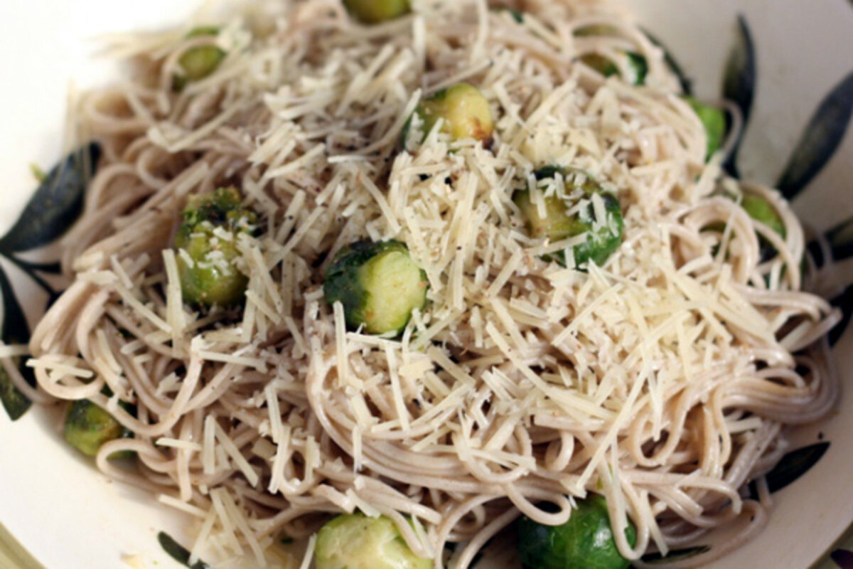 Soba with Parmesan and Pan Fried Brussels Sprouts