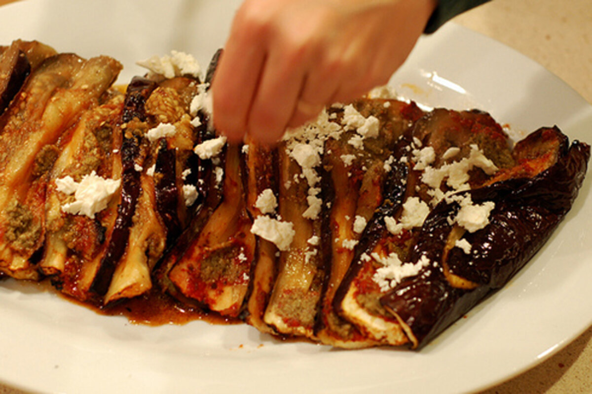 The eggplant was perfect 鈥 tender and flavorful. I topped the slices with crumbled feta cheese and drizzled them with a little olive oil. They tasted divine and the clean up was minimal, too. If you have a wood stove or fireplace, give this a whirl.