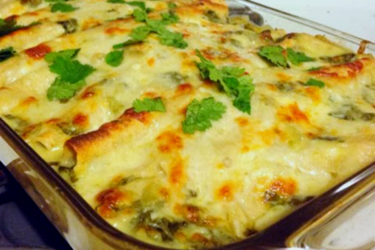 Shrimp Enchiladas with Roasted Poblano Sauce