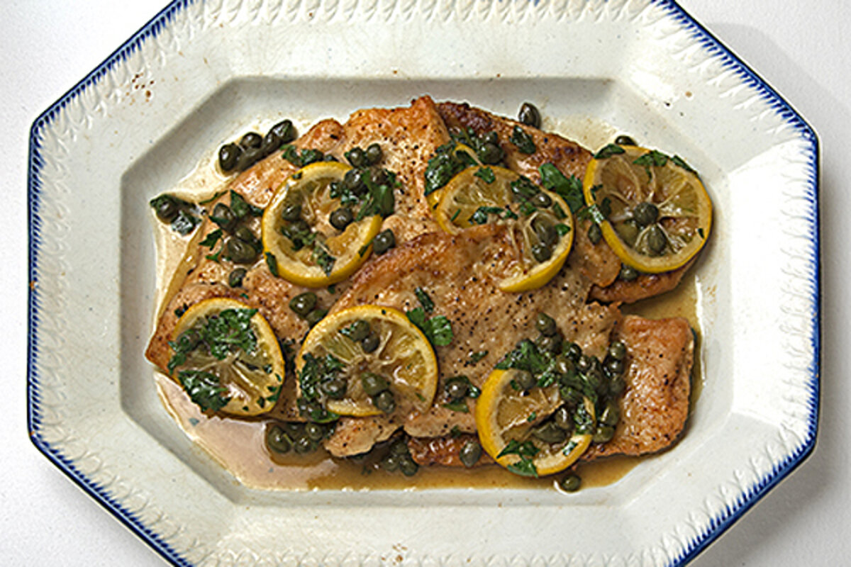 In all cases, the meat is sliced and/or pounded very thin, then dredged in flour and saut茅ed in butter or a mix of butter and oil. It is then topped with a lemon butter parsley caper sauce. Variations can include shallots, garlic, wine, and paprika. However your piccata dish comes together, you鈥檒l end up with something that tastes far too good to be so easy. When you serve it, be sure to eat the lemon slices 鈥 and encourage others to do so. You will be rewarded with citrusy bursts of wonderfulness. (Here is where the Meyer lemon鈥檚 thinner skin is a definite advantage.)
