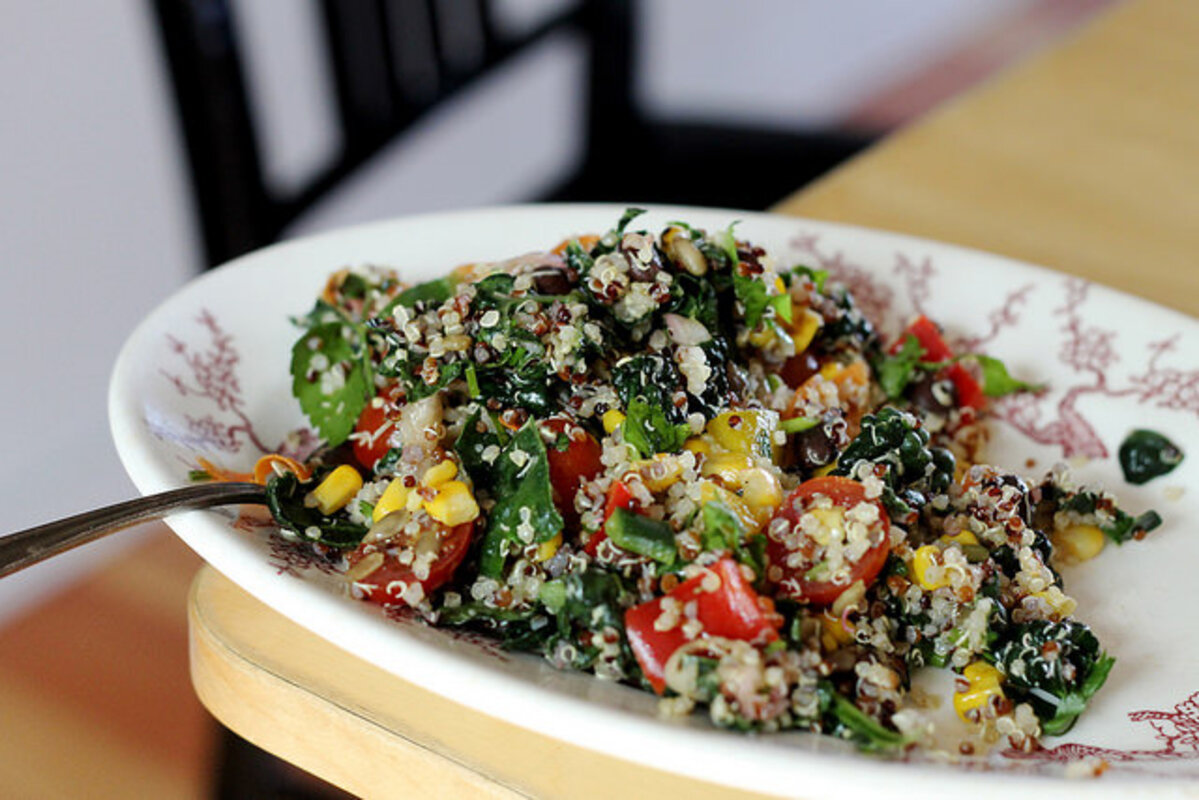 If you put it in the fridge, you'll probably want to add a little more salt, lime juice, or olive oil when you pull it out as the grain will soak up everything up as it sits. If you want to add cheese to this, feta or queso fresco would be my choice. You could also serve it with diced avocado on top.