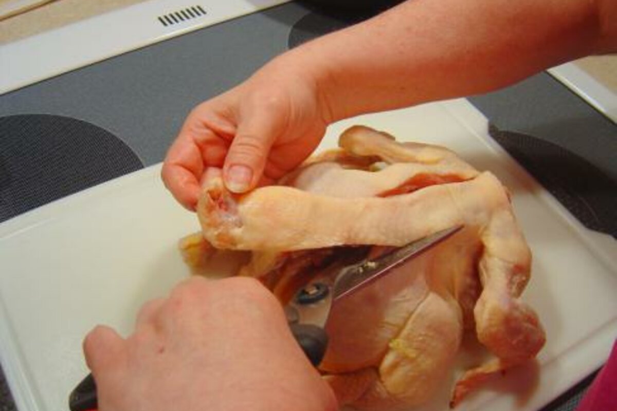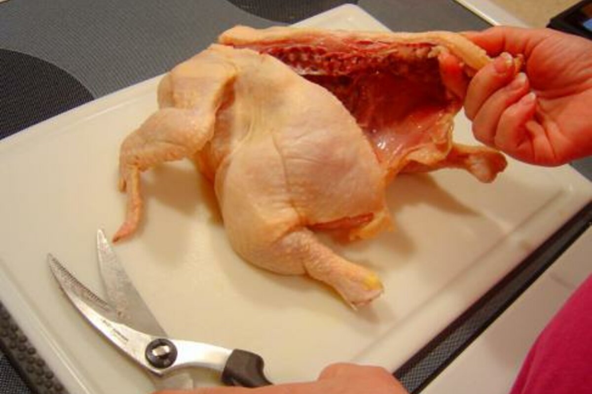 You can do this with any type of bird, even a full size turkey, although like the difference between cutting paper with scissors, and cutting cardboard, the backbone of a turkey is a bit bigger and takes slightly more effort to cut through. But it is something that can be done in a few minutes while the bird is in your sink or basin being rinsed off.