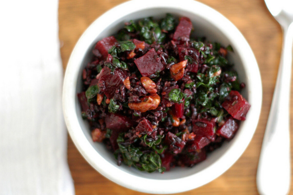Forbidden rice, roasted beet, and kale salad