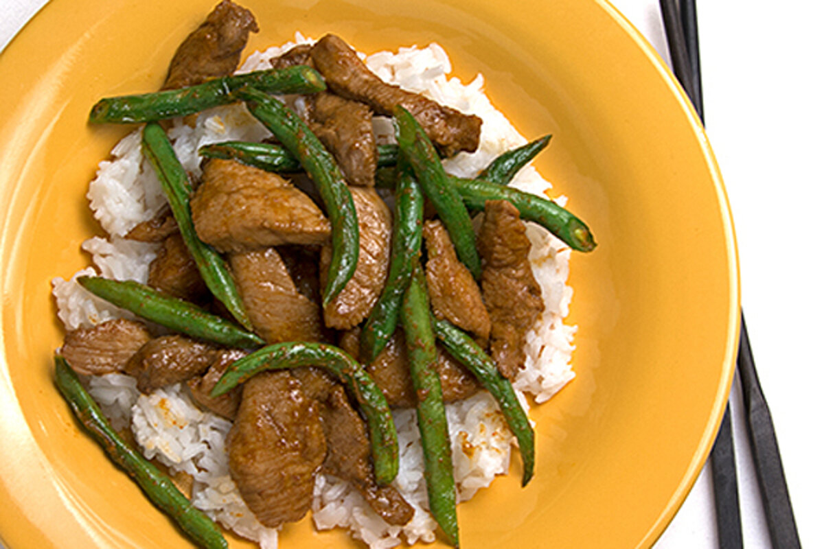 This is one of those dishes: a simple marinade of an animal protein (here, the favorite Chinese meat 鈥 pork), then fast frying with one vegetable. You can use this same marinade for beef, chicken or lamb 鈥 you can use it for ground meats 鈥 you can vary the marinade ingredients. You can cook it in a wok, you can cook it in a skillet. Start marinating the meat in the morning and then when you get home from work, the rest will take just a few minutes 鈥 even less time than cooking the rice. A few ingredients, a few minutes, a lot of flavor.