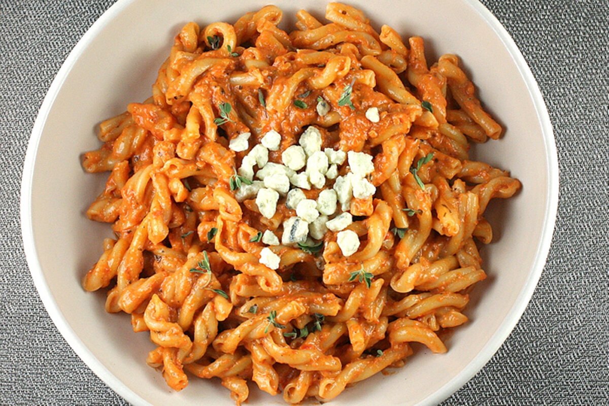 The combination of tomatoes and blue cheese 鈥 sweet and tangy 鈥 is an absolute winner. Pasta tossed in this rich sauce makes a great family meal, or an impressive dish to serve to company. You can even make the sauce a little ahead, and put it all together right before serving.