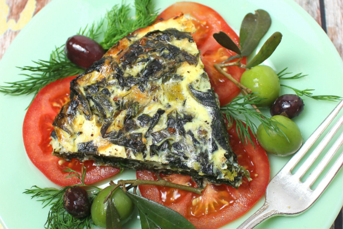 One of my favorite Greek foods is spanakopita, cheesy spinach filling inside layers of flaky phyllo pastry. I have always had a soft spot for it. But around 10 years ago I started doing a low-carb diet, and the phyllo pastry was a no-no on that diet. I decided to ditch that part of the recipe and just bake it in a pan, sort of the way you would do a quiche, and it turned out quite nicely. This is essentially all the flavor of the pastry wrapped appetizer, but made more like a crustless quiche.