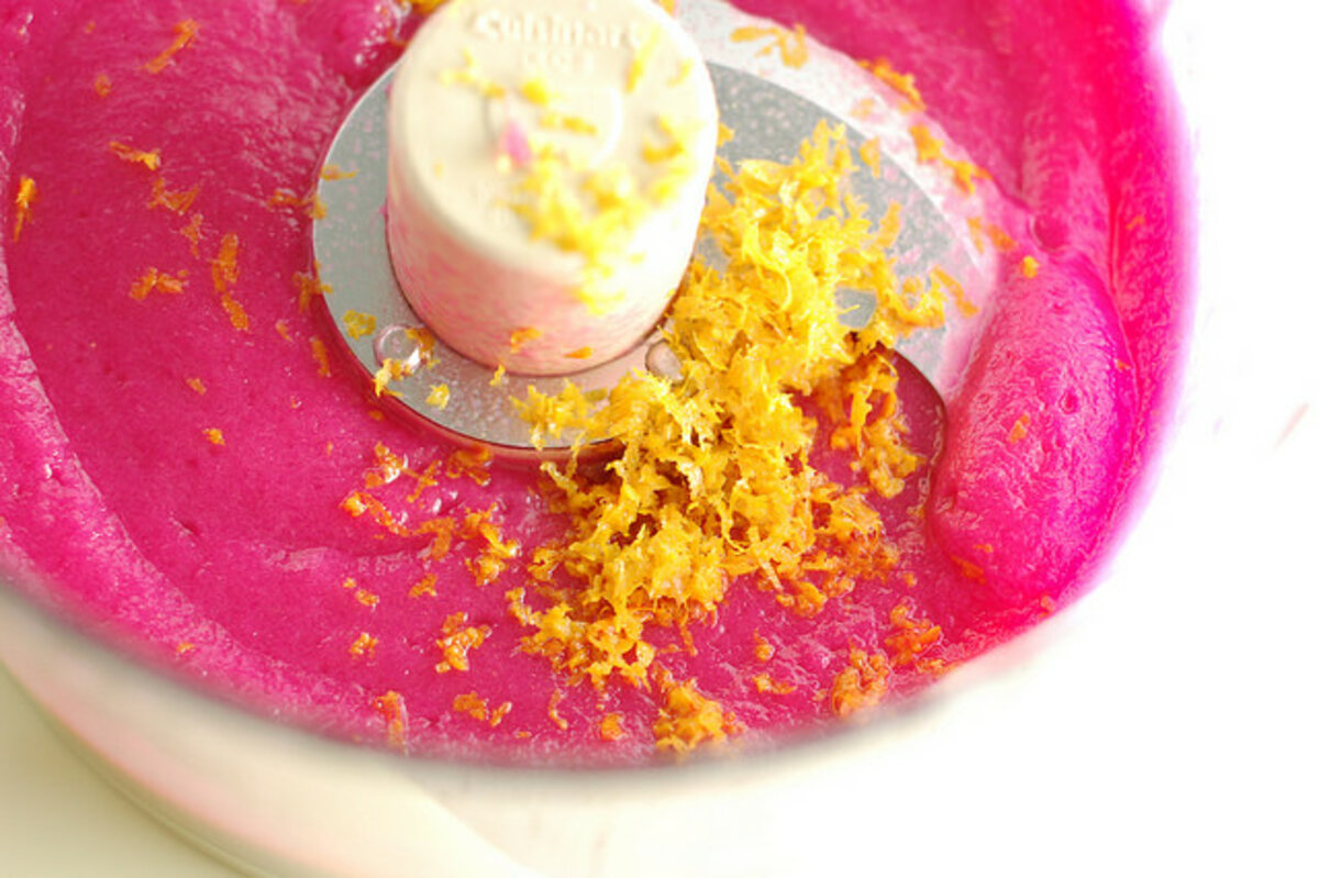 It's fairly simple to make. You cook the beet until it's quite soft (this can take a while...) then blitz it in the food processor into a puree.