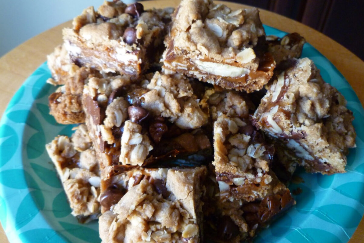 This was one such recipe because it was quick and easy to do 鈥 make the crust, reserve a handful for sprinkling on top, melt some caramels and milk, toast the pecans, parbake the crust, sprinkle with toasted pecans and chocolate chips and scatter handfuls of the reserved crust mixture over the top before baking again.