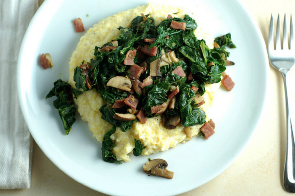 This hearty dish is particularly delightful on a chilly, gray day 鈥 the kind we're having more and more of right now. It's warm and rich and savory and fills you up. Salty, garlicky kale and mushrooms get a big boost of flavor from bacon and thyme and the polenta is creamy and rich with Parmesan cheese. A perfect mix of flavors in every bite.