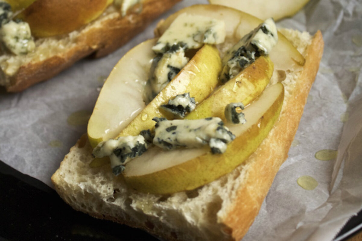 Pear and Blue Cheese Tartine with Black Truffle Oil