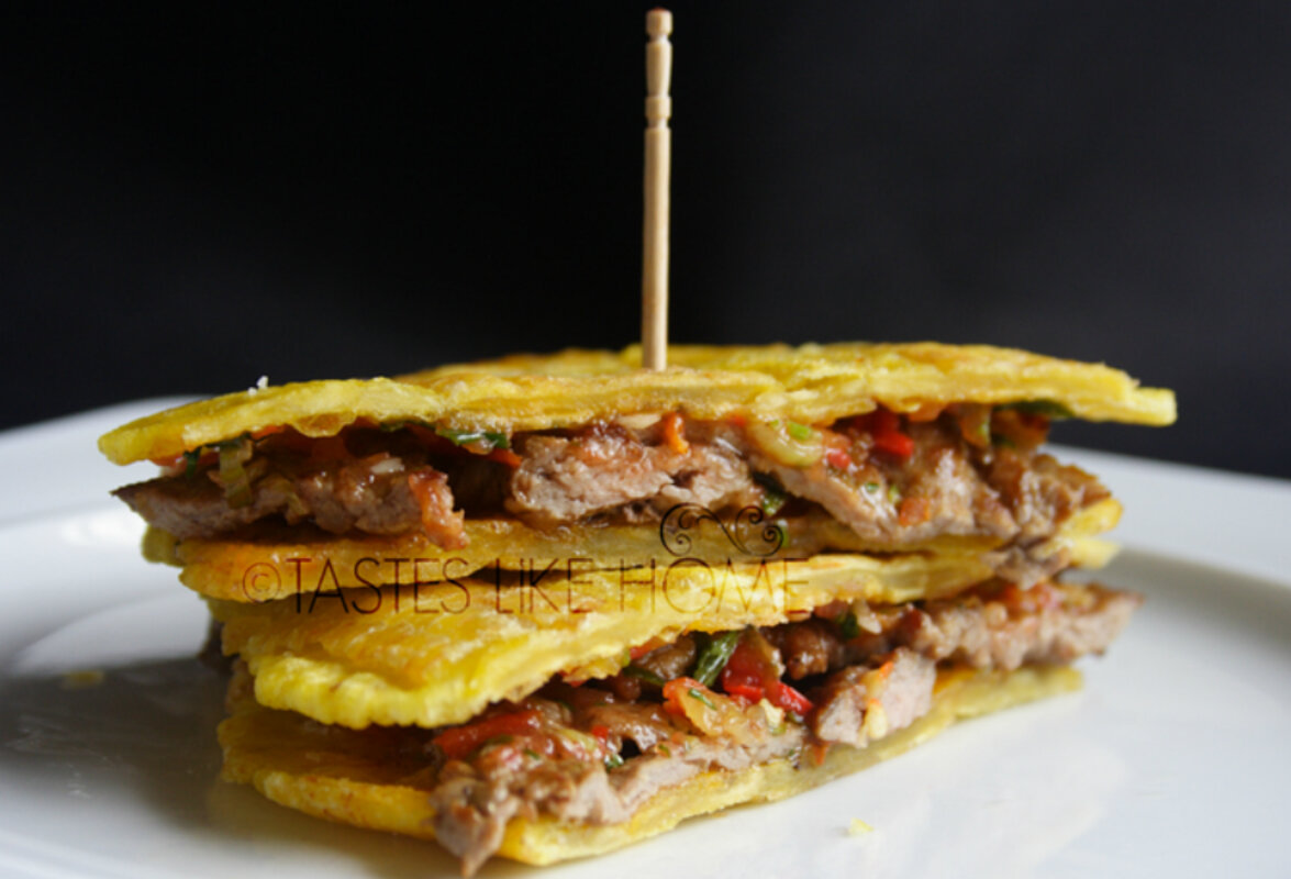 The bun for your next sandwich does not have to be made with any type of wheat flour, not when you can sandwich your filling between two pieces of (twice fried green plantains), which are also known as tostones, chatinos, and fritos verde in various parts of the Spanish-speaking Caribbean.