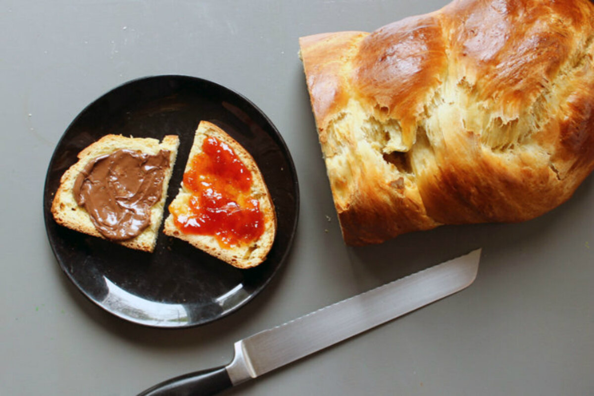 This morning, we enjoyed thick slices of the freshly made tsourki with our favorite toppings. My mother-in-law makes jam from the apricot聽and plum trees in their yard on Corfu. The apricot jam is a favorite of mine, so deep with flavor it tastes like candy. And to really put our decadence over the top, we always spread a slice with Nutella.