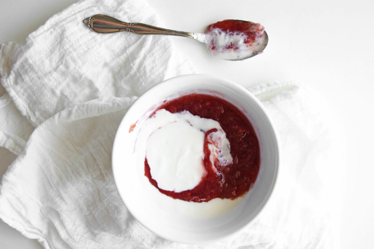 Use your discretion on the sugar 鈥 it鈥檚 totally up to you if you want it to be more sweet or more sour. If you're serving it with dessert, maybe go tangy! If you're gonna put it on plain yogurt 鈥 maybe go sweet. The recipe is slightly on the less-sweet side. I'd go up to 1 cup of sugar for a sweeter option.