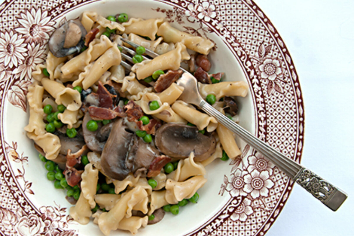 Campanelle with Mushrooms and Peas