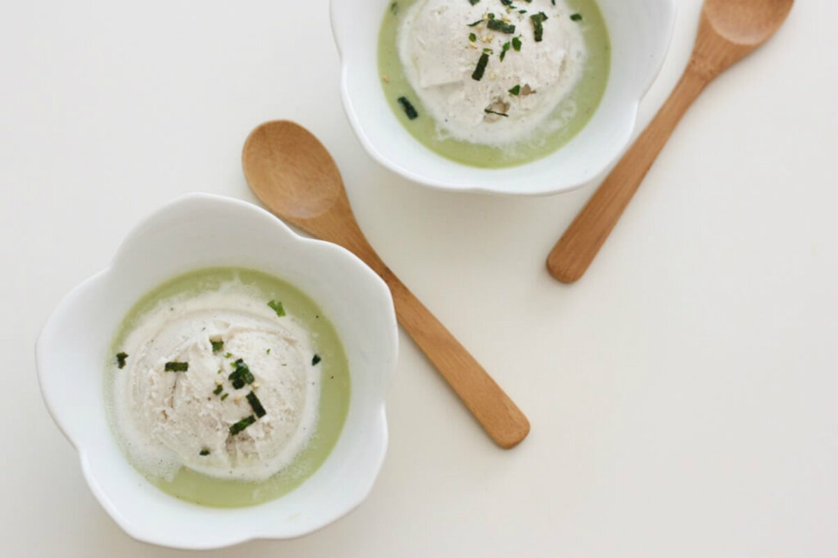 2. Divide the gelato among 4 small bowls or coffee cups. Pour about 1/2 cup matcha milk into each bowl and sprinkle with nori furikake. Serve immediately.