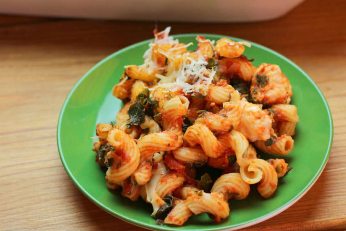 Back-to-school family meal: Italian chicken, pasta, and tomato bake