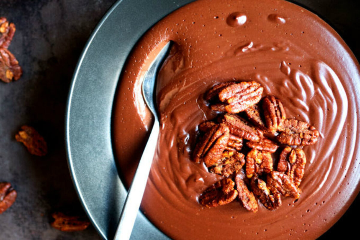 4. Return to the heat and cook for another two minutes, or until thickened. Remove and serve immediately with the candied pecans.