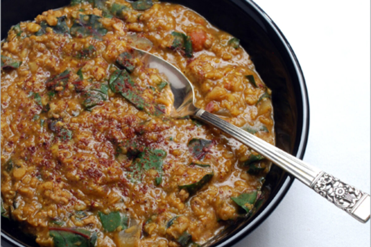 Like any lentil soup, this one is terrific for the cooler months. It would be suitable for a casual autumn lunch with friends, or as something to make on Sunday for heating up when you come home from work during the week. It鈥檚 robust and satisfying, as well as healthy. And, with its hearty texture, the rich rust color of the lentils and the deep emerald green bits of chard, it just invites you to pick up a spoon and dig in.