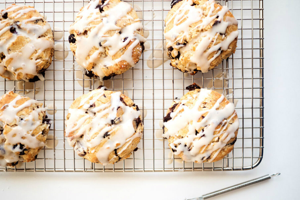 6. Remove from the oven and allow to mostly cool before combining the milk and powdered sugar, and drizzling over the scones.