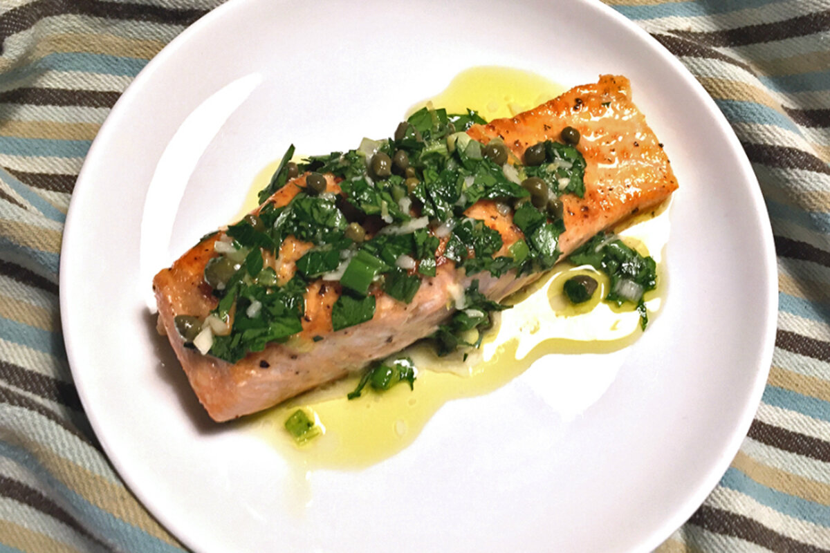 Bright, lively, springlike: Pan-seared salmon with parsley lemon sauce