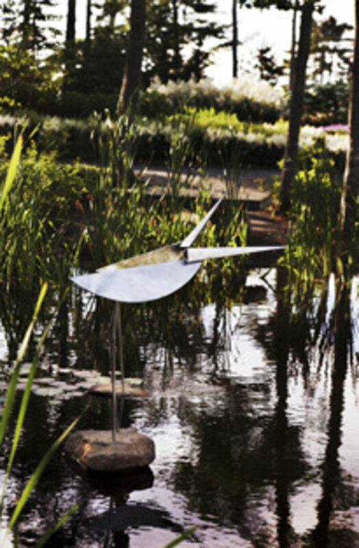 The feature art this spring and summer is stainless steel kinetic sculptures by Massachusetts sculptor George Sherwood that seem to come alive in the wind.