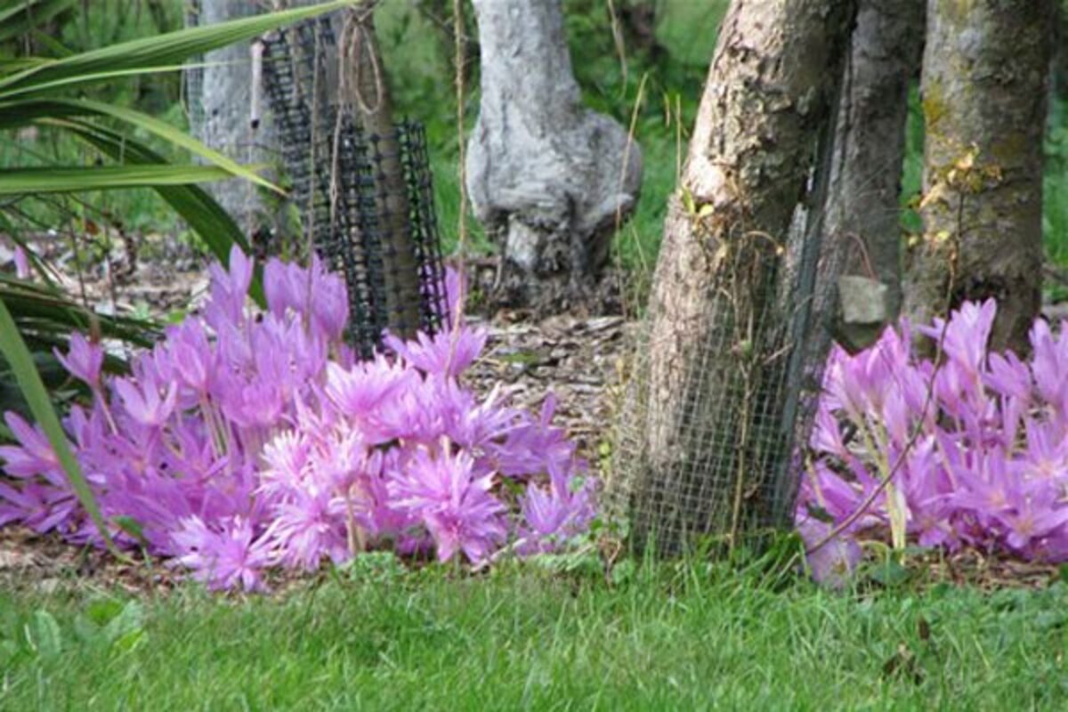 A bed of autumn crocus does more than just startle, of course; it also paints the fall landscape in soft swatches of lavender, pink or white blossoms.