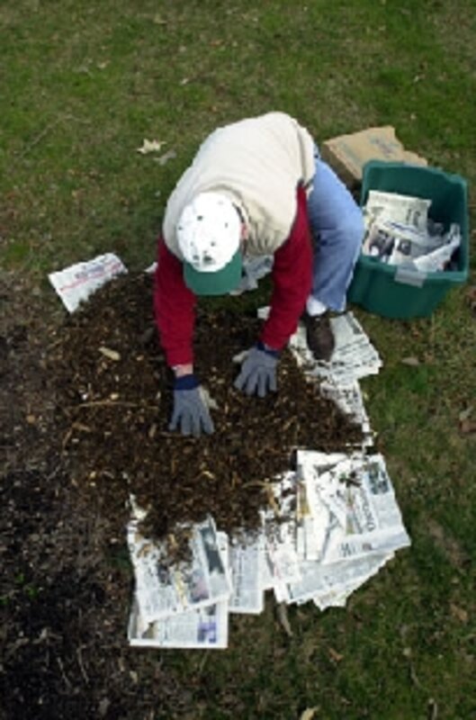 Keep the mulch layers moist by hitting them with the hose occasionally. All of the materials will not only choke out the lawn grass beneath them, but decompose over time, enriching the soil with humus.