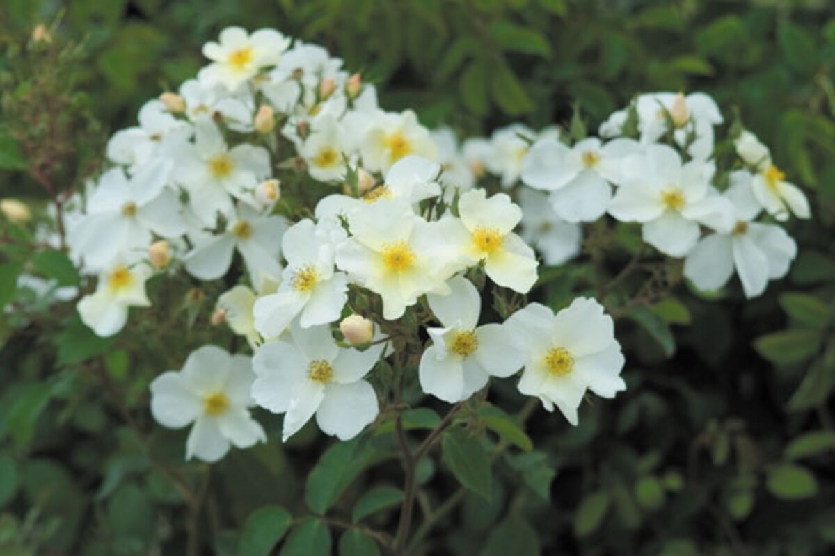 Since so many older varieties will be featured in the design, a with a hint of lemon-yellow behind its stamens seems a perfect choice to carry the name Kew Gardens. It has Old World charm, which David Austin particularly admires, along with disease resistance and prolific bloom.