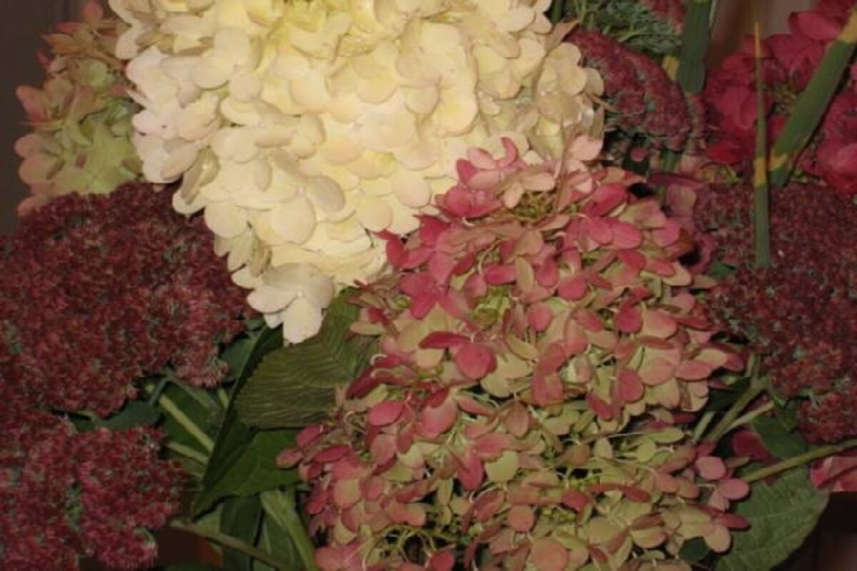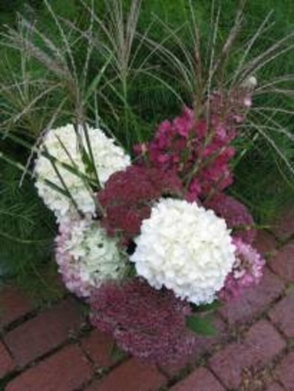 My 鈥楲imelight鈥 shrubs looked so spectacular last week that I cut a bouquet of fresh white and old pink-tinted blooms for my dear friend Rose. I also included in the vase one stunning upright panicle of聽 鈥,' some rosy flower heads of Autumn Joy sedum, and pinkish inflorescences of 鈥楽trictus鈥 maiden grass. (See photo at top.)