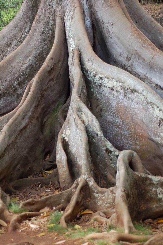 The Allerton is also a garden of stone and water, of stability and movement. [See third photo at left.] And when the trade wind picks up in the bamboo grove, it is a garden of gentle sound as well.