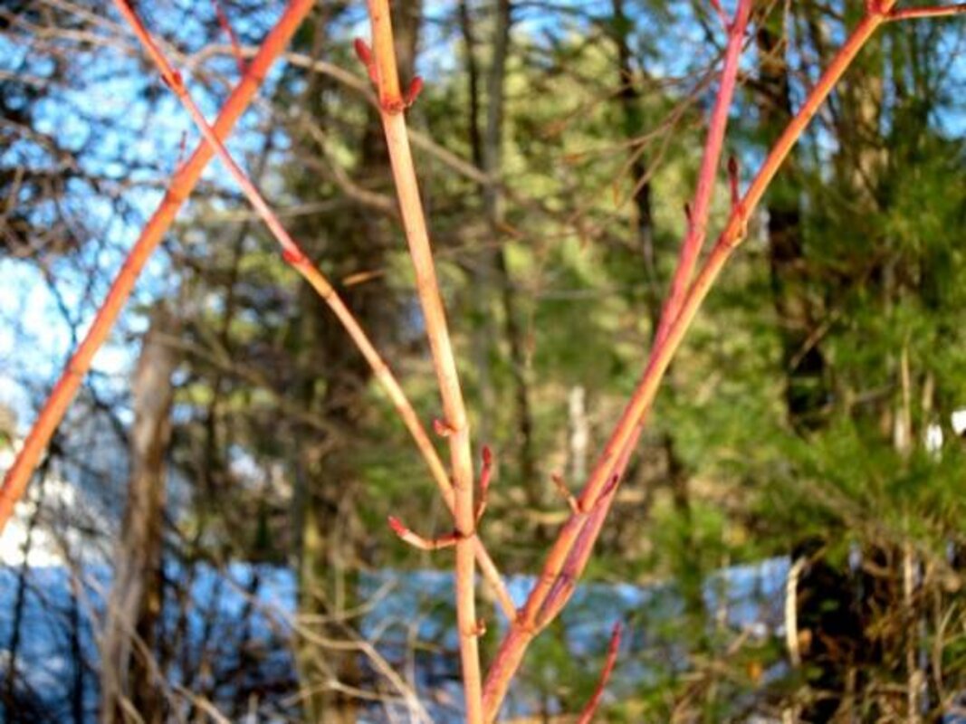Which brings me to my topic. I was moseying about the garden when I came upon our little patch of striped-bark maples. Acer pensylvanicum 鈥楨rythrocladum鈥, a naturally occurring variety of , or coral-striped maple, made me catch my breath.