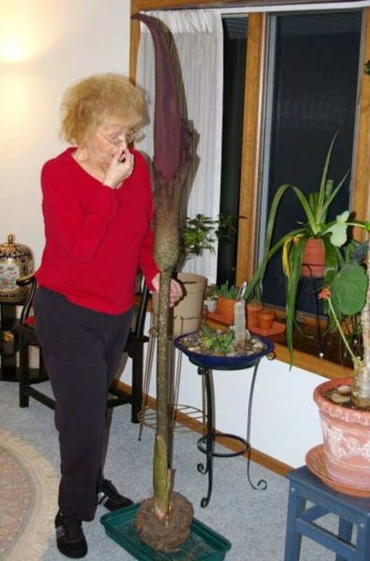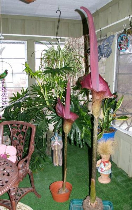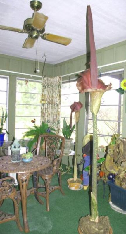 Both of my tubers are in the west-facing bay window of the living room, growing six to eight inches in height daily. I鈥檒l let them unfurl there and enjoy their , but when the stench begins, both will be banished to the sealed sunroom, as they were in previous years.