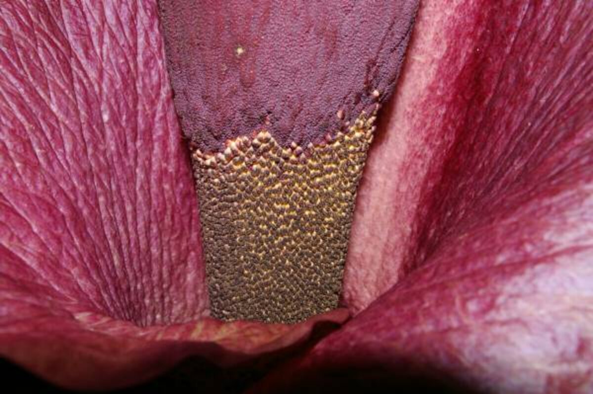 The flowers that rise from the tubers are known for an odor likened to the aroma of rotting flesh, and the purple spathe that encompasses them has been equated by plant provocateur Tony Avent to the color of vinyl seat covers from a 1967 Plymouth Barracuda.