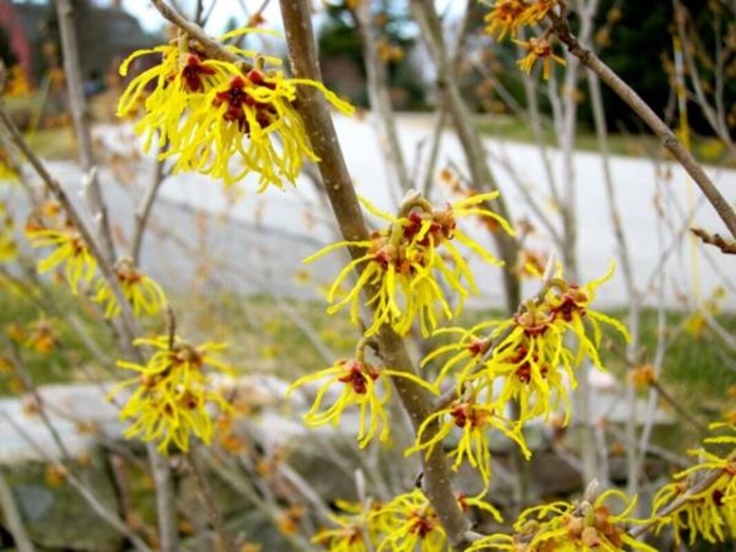 One of my favorites is . It has been in full bloom at least since March 1. That may not be news for you, since witch hazels typically bloom in winter, some time between January and March.