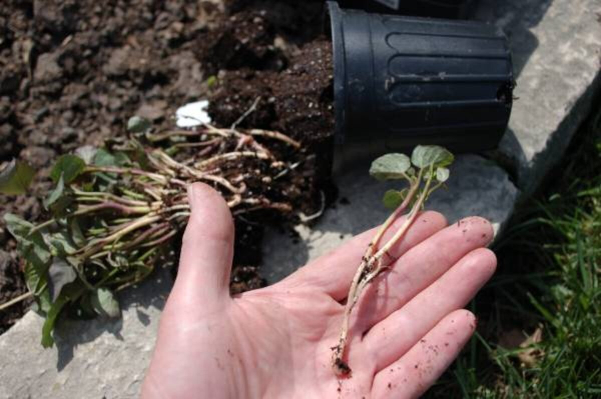Sure enough, once I emptied the nursery pot, the little slips were easily separated, looking kind of like 25 forlorn little salad sprouts.[See Photo No. 2 above.]