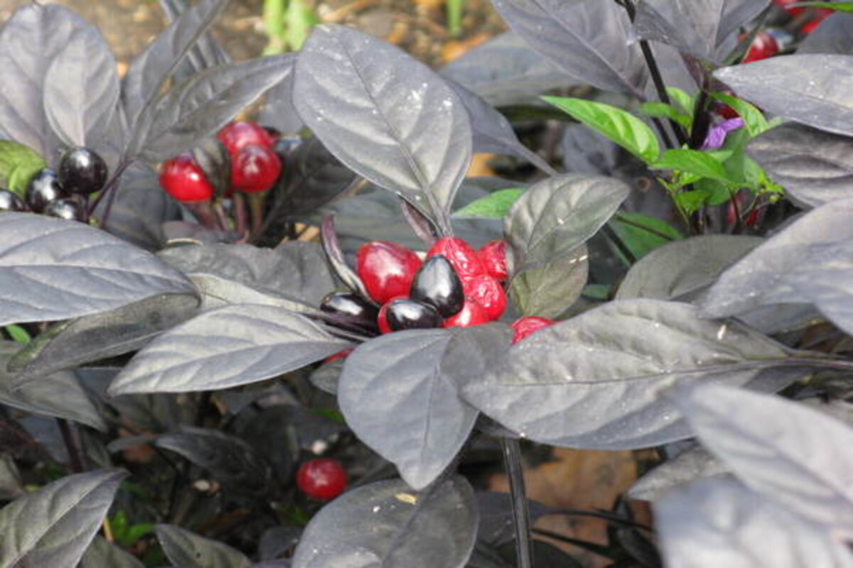 Black Pearl, on the other hand, is sought after for its deep purple, almost black leaves. If started or grown indoors, the leaves will start out green, but once exposed to the sun the color quickly deepens.
