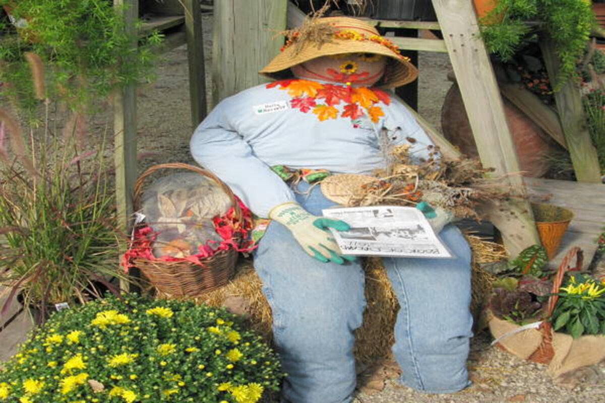 As the days grow shorter and temperatures continue to fall, hay bales, scarecrows, pumpkins, and mums are popping up all over town. One of the most familiar figures of the rural landscape, these fun symbols of the harvest season become cleverly themed and colorfully decorated seasonal yard art.
