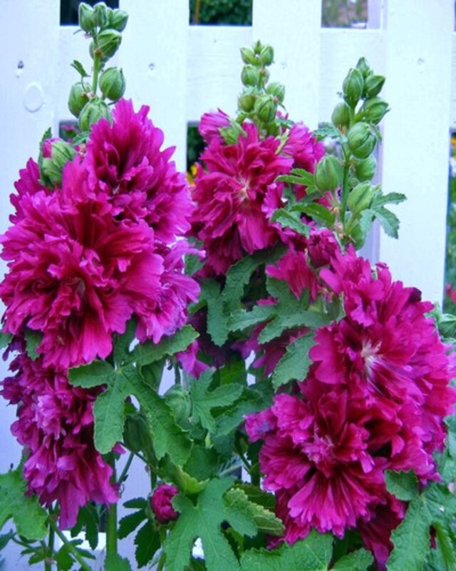 Hollyhocks used to be simple and beautiful and perfect for . Now most varieties have extra petals and resemble the Kleenex flowers I once made to decorate for the junior prom. Among them is [see photo at left], which not only has cluttered double blossoms but is only 30 inches tall.