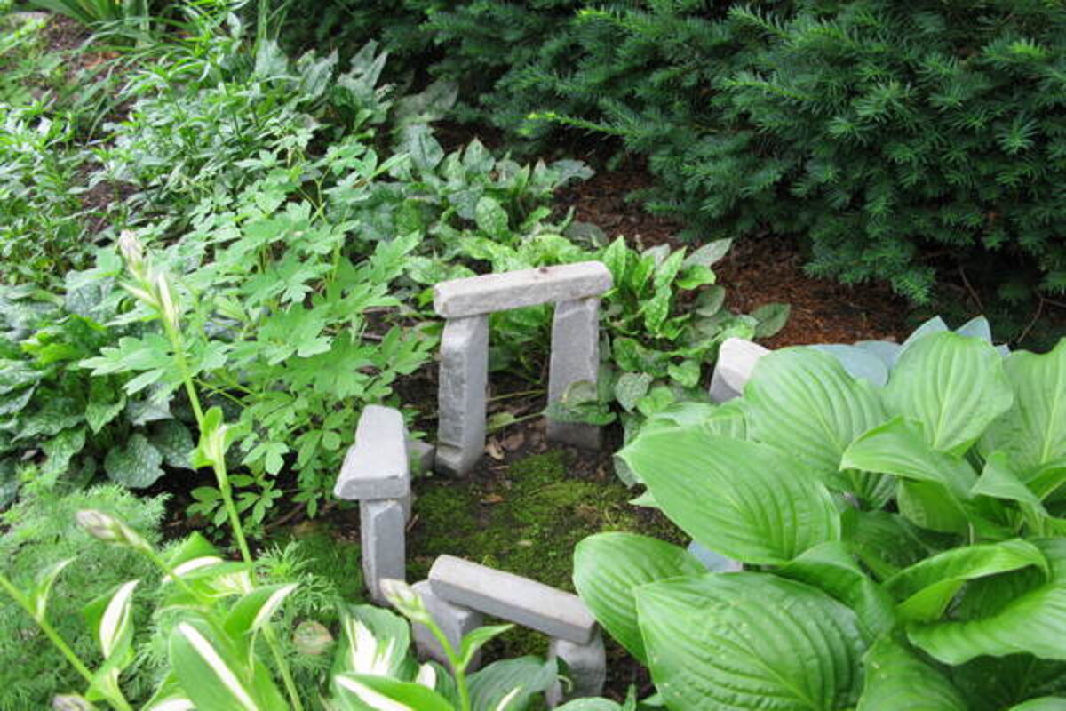 Since fairies would need a space of their own for celebrations and festivals, small stones and pebbles for pathways and tiny benches, chairs, fencing, and arbors could provide encouragement for the fairies to stay.