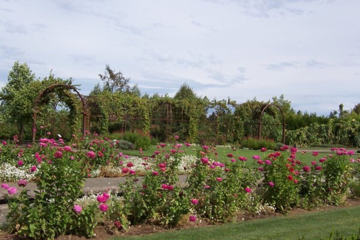 "Under ideal conditions, a nuc hive might produce 30 to 40 pounds of honey in its first year, but the hives with the coolers averaged 75 pounds," Thompson said. The Oregon Garden [see second photo above; click arrow at right base of first photo.] has an abundance of early spring flowers, which also contributes to the hives' success.