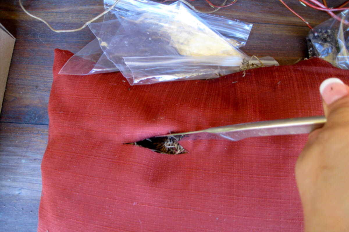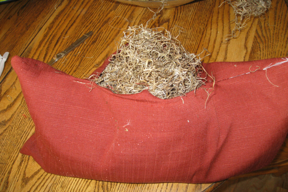 - Open the seam of the pillow on one side and remove all the stuffing.