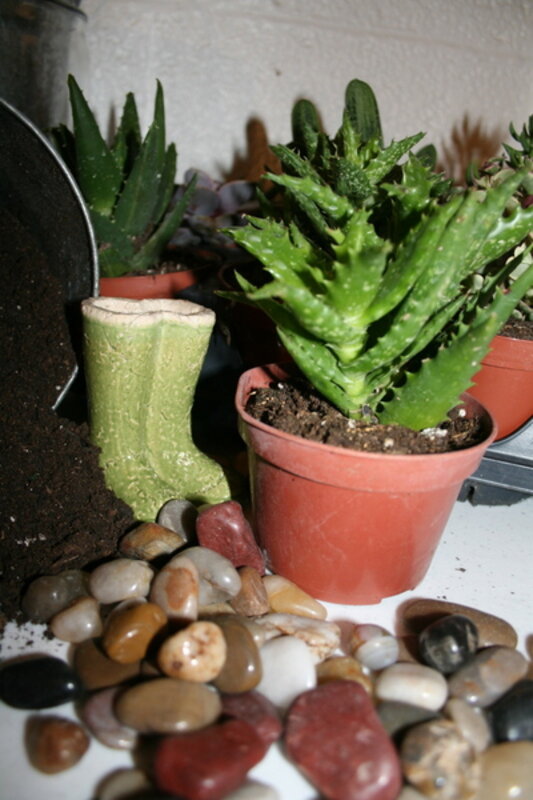 As it turned out, most of our members had a high light location for their designs, so we went with succulents. Oh my, I just have to tell you, succulents are fun to work with!
