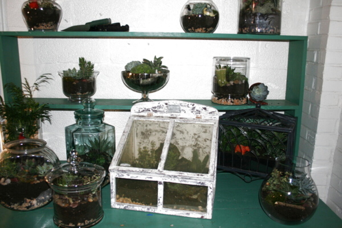 2) Ask friends to bring a terrarium (glass container), either opened or closed, to build their design.