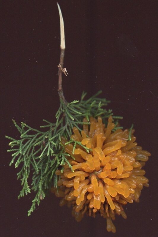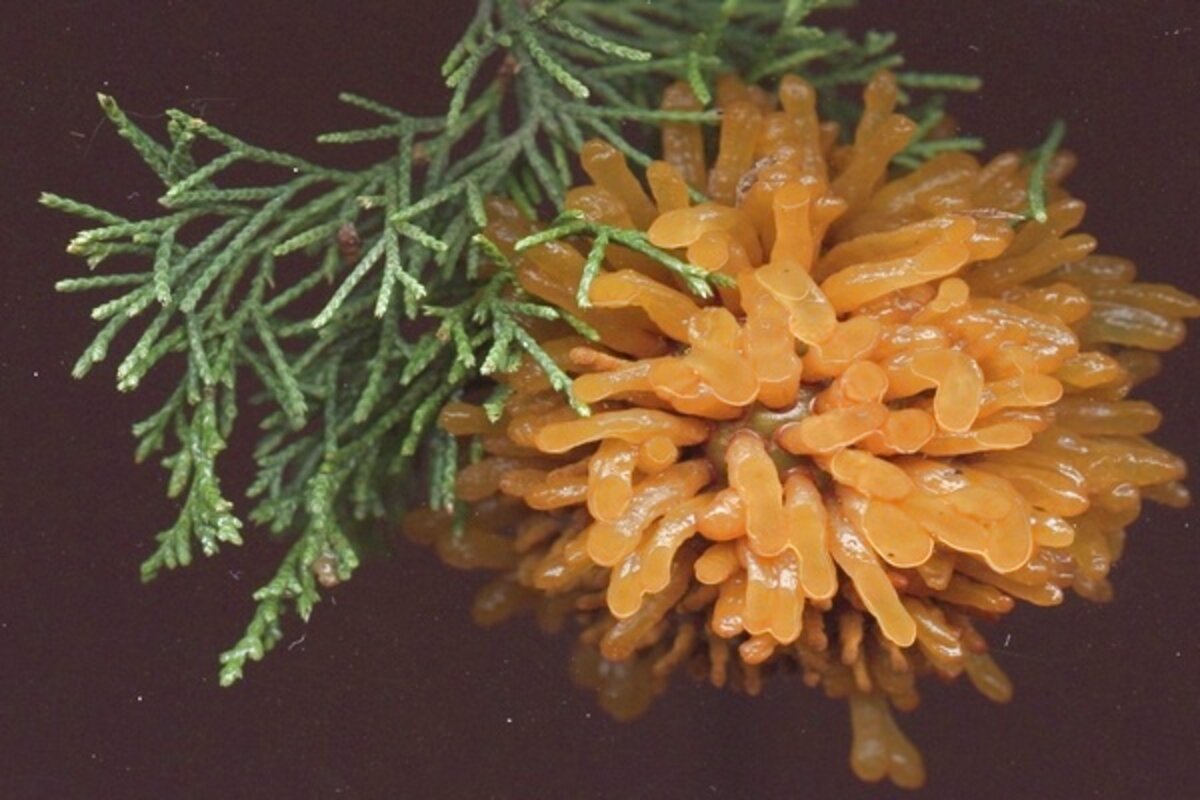 The native Eastern red cedar 鈥 actually a juniper (Juniperus virginiana) 鈥 is particularly susceptible to rust, and these gelatinous galls form, swell, and release spores that affect apples and crab apples in my yard.