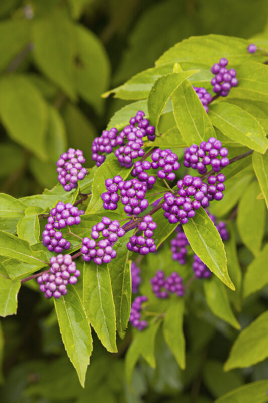 However, Clausen doesn鈥檛 ignore the back of the border, where taller plants such as Japanese spirea, cutleaf stephanandra [see second photo above; click on arrow at right base of first photo], and beautyberry [see second photo at left] are suggested.