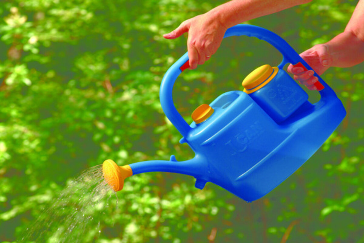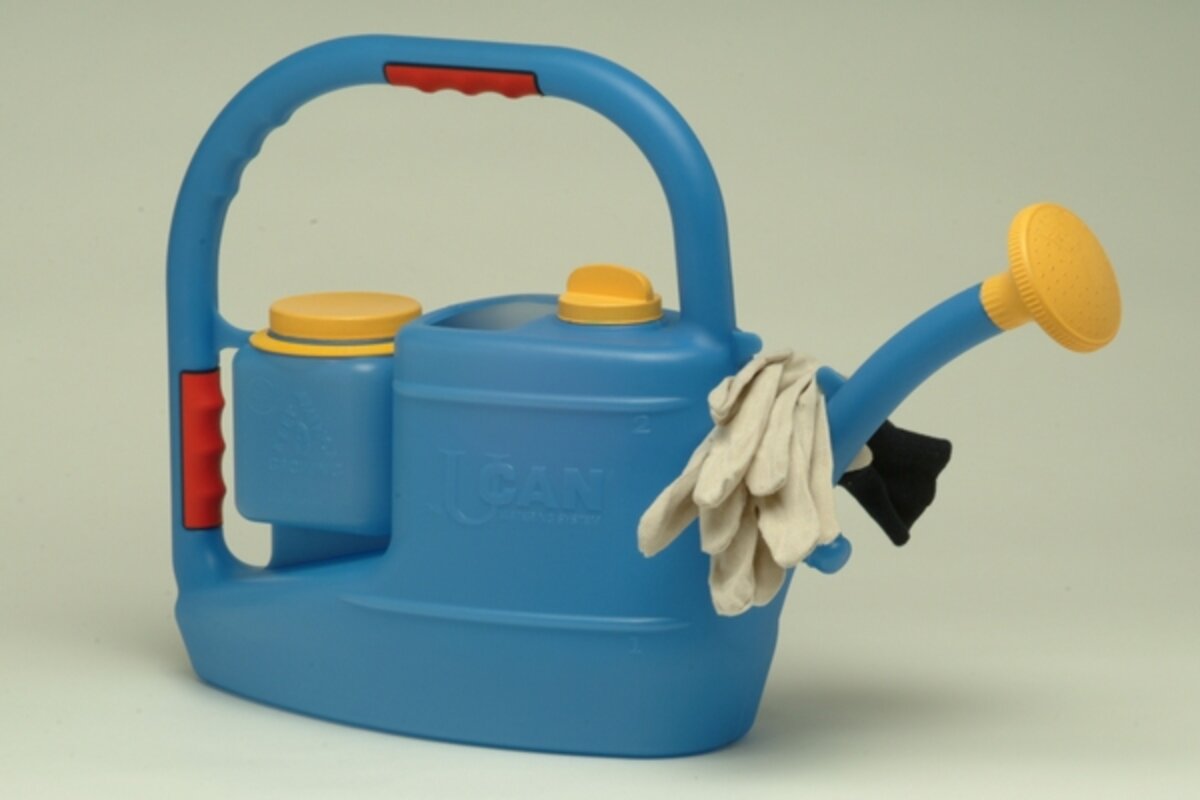 It's called , and incorporates several nifty features that other watering cans don't. It has a built-in container for fertilizer (dry or liquid), with the lid surrounded by a dial that has the days of the month on it so you can mark the last time you fertilized, or the next time it's due.