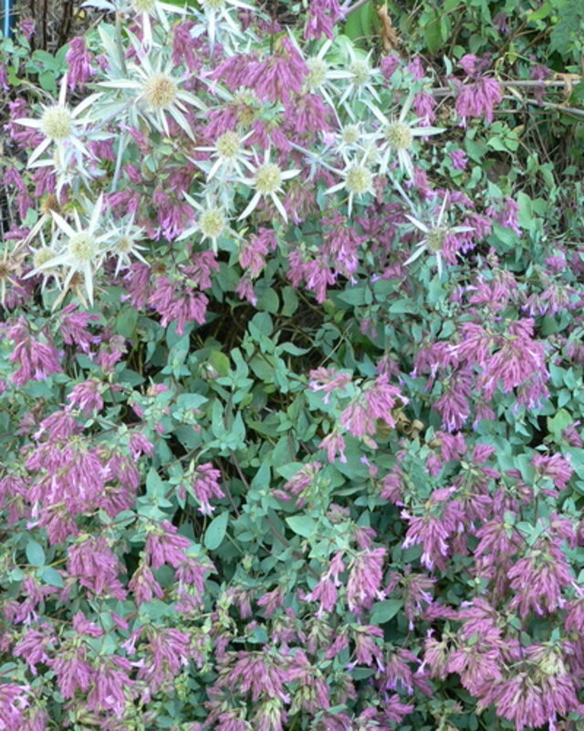Lime-green Origanum acutidens is especially lovely tumbling over red sandstone boulders and hybrid 鈥楢methyst Falls鈥 is another cascading type with loads of bright pink flowers poking out of chartreuse bracts. The lavender-rose bracts of are also very showy.
